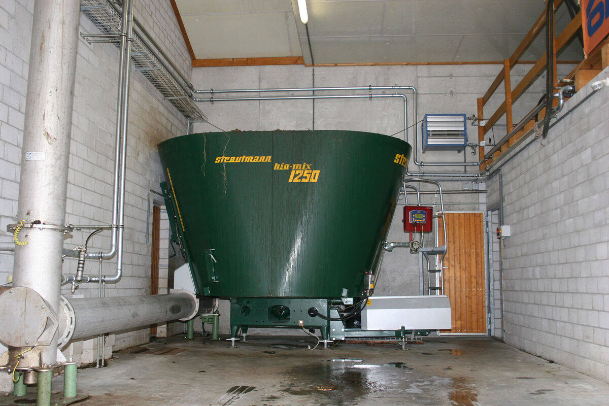Mit dem Vermischen von Mist, Gülle und Gastroabfällen sind wir in der Lage, Strom und Wärme sowie Gülle mit sehr hohem pflanzenwirksamen Stickstoff und Humus für den Gartenbau herzustellen. Die Abwärme des Blockheizkraftwerks wird zur Heizung des Fermenters, der Hygienisierung und das Warmwasser genutzt. Jährlich produzieren wir ca. 300'000 kw/h Strom. Dieser wird direkt in das Netz eingespeist.